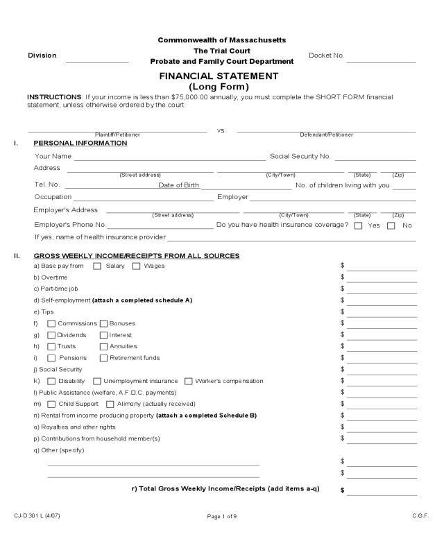 There’s no getting around the fact that the Financial Statement is by far the most important document required by the Court. Everything flows from the information contained on each parties’ Financial Statement. Asset and debt division, child support and alimony: all of these amounts turn on the amounts entered on the Financial Statements.